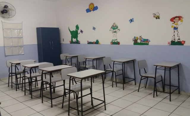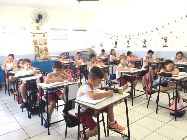 O colégio possui dois pavimentos, com salas amplas, arejadas e bem iluminadas. O conteúdo é registrado em quadro branco.