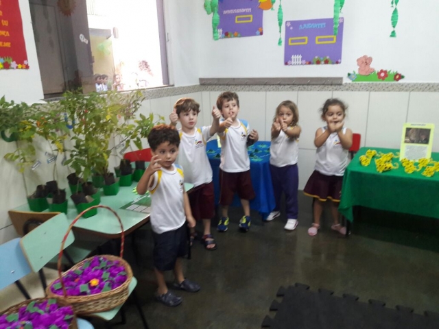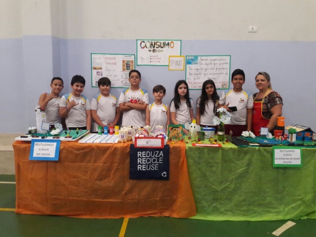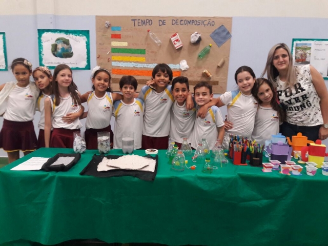 Feira do conhecimento: os alunos apresentam trabalhos sobre diversos temas através de uma aboradagem teórica e prática, sociointeracionista.