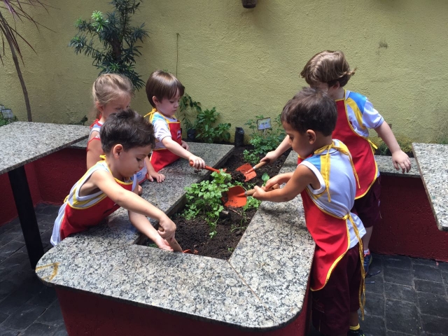 Na área de convivência, temos o espaço da horta onde acontecem as aulas de horticultura e jardinagem.